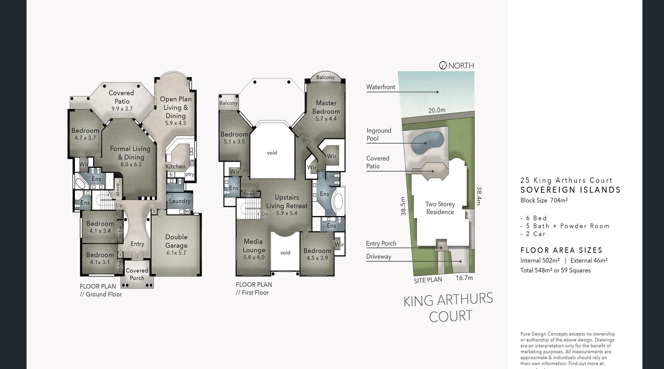 - Internal 502m2 + External 46m2 =548 m2 in total or 59 Squares
