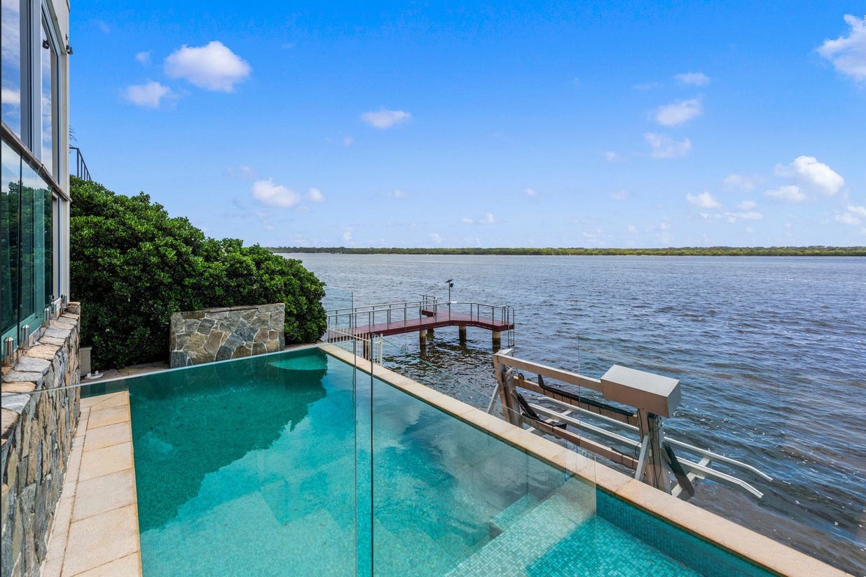 Introducing a lifetime opportunity to live in this masterpiece house on Sovereign Island. It captures breath taking blue water view, night city view, and mangrove forest view, also brings absolutely top-level privacy. This residence meets all you would expect from a waterfront property. Positioned over 3 levels, from basement carparking to roof top terrace, joined by a compact lift service. It offers family quality living facilities or just simply enjoy working at home. A fully functioning theatre downstairs, 3 kitchen areas on ground floor, 5 large and spacious bedrooms upstairs at your services.