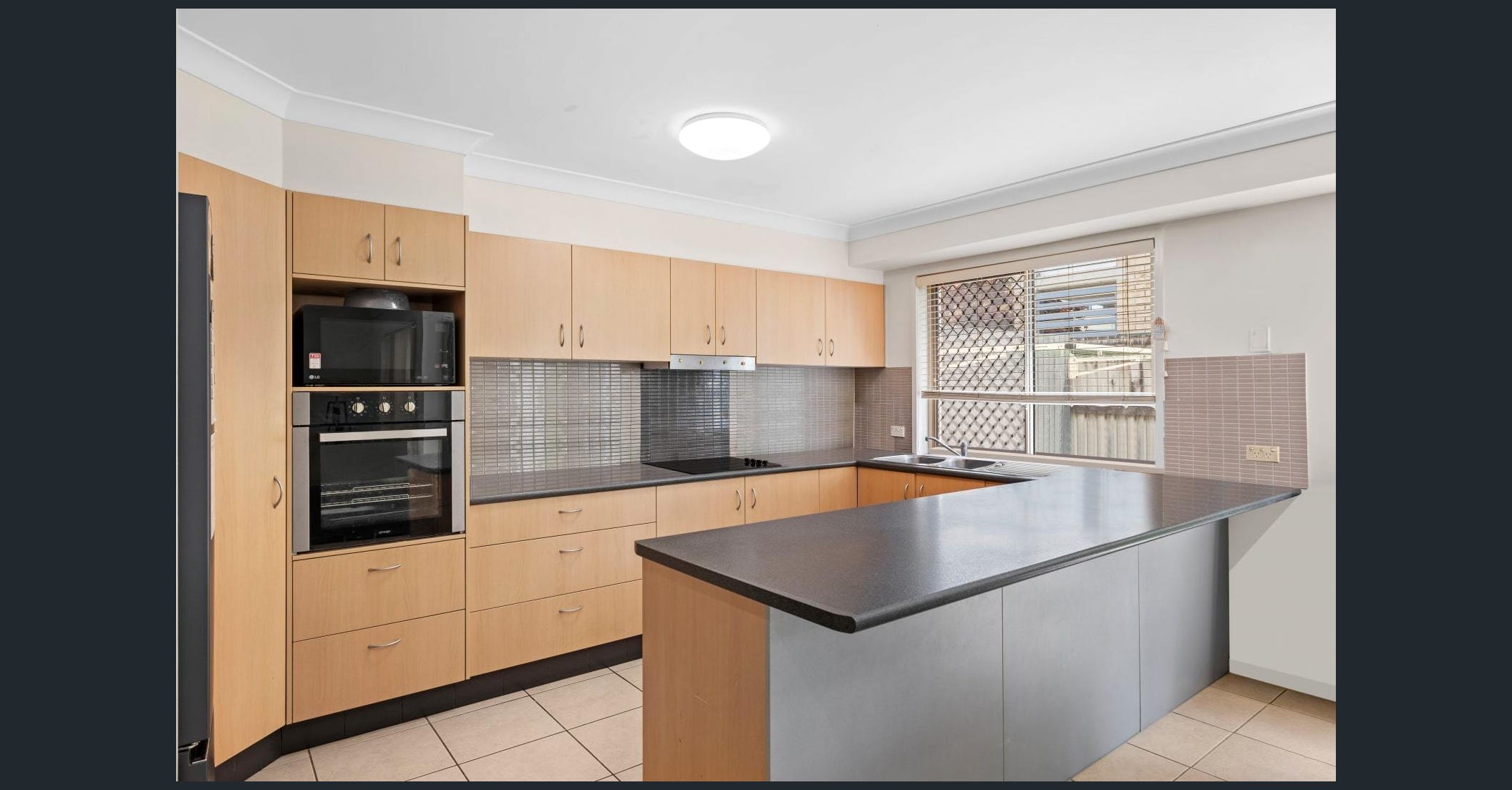 - Huge kitchen with stainless-steel appliances and plenty of cupboards and bench space