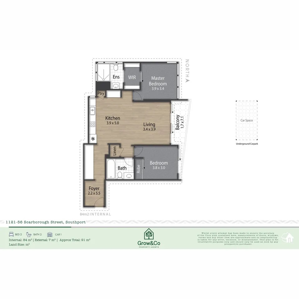 • Total area: 92m2 (84m2 internal + 8m2balcony)
