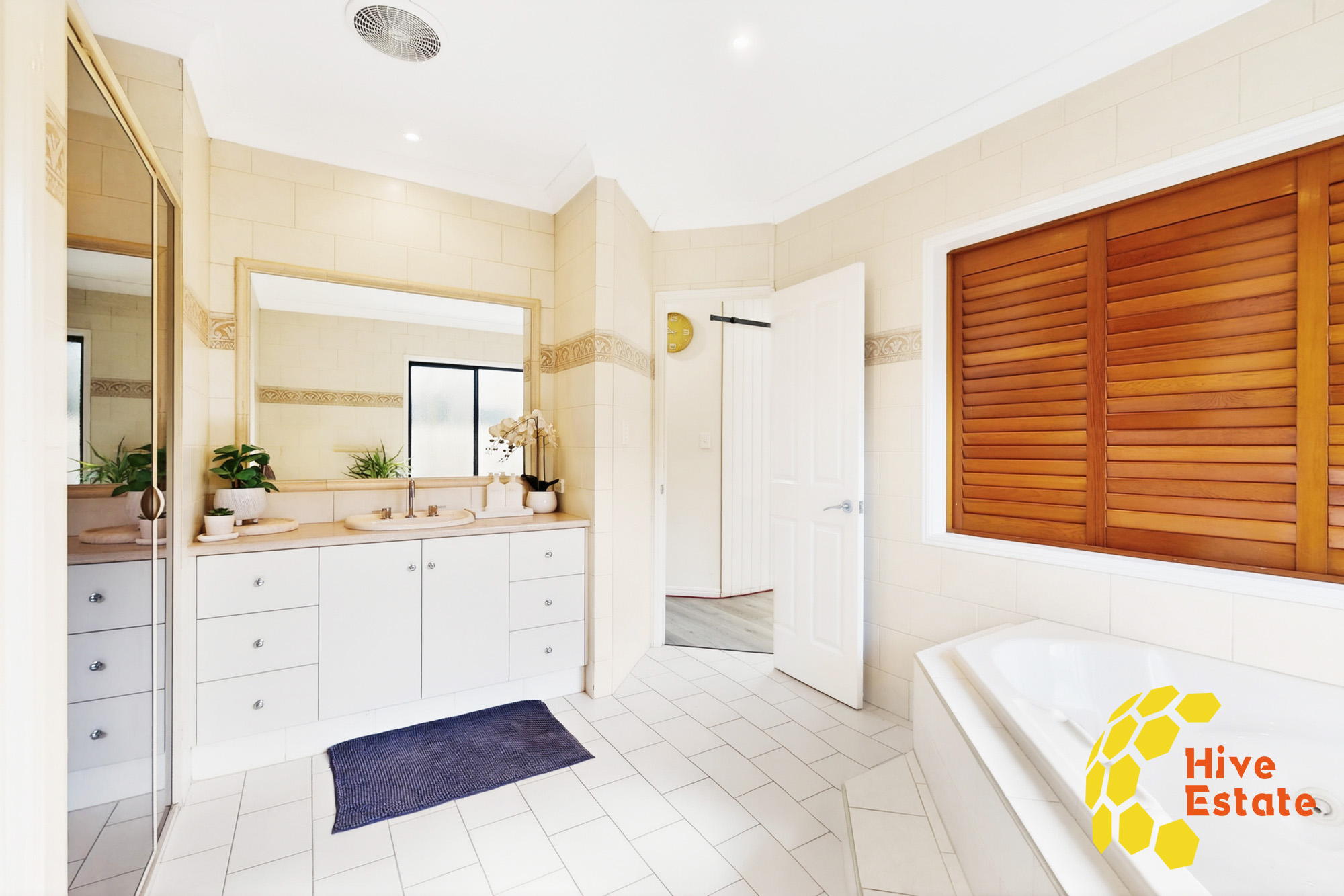 At the heart of the home, the gourmet kitchen features a sleek gas cooktop, premium appliances, and ample bench space, making it ideal for both family living and hosting guests.
