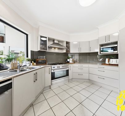 -Modern gourmet kitchen with gas cooking, stone bench tops & soft closing draws