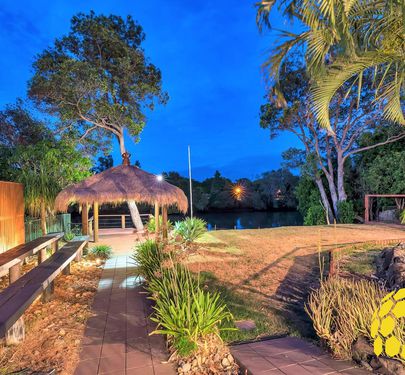 Further enhancing the resort-style atmosphere, tinted sliding doors open to an impressive indoor–outdoor pool area, while the front and rear Bali huts offer tranquil spaces to unwind. Completing this exceptional waterfront offering is a private pontoon, ideal for boating, fishing, and enjoying the best of coastal living.