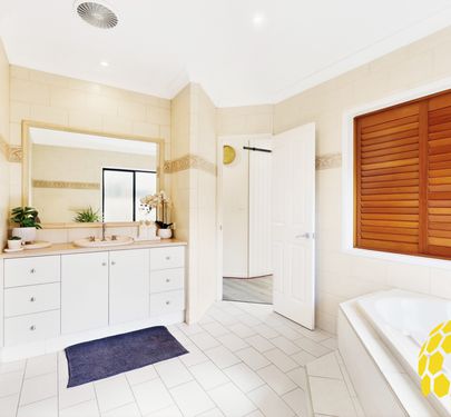 -2 Massive master bedrooms, ensuite with large double space shower featuring a rain drop shower head, spa & a dual vanity