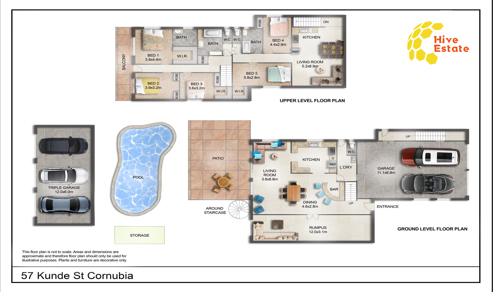The open-plan layout on the ground floor features multiple living zones with excellent natural light, enhanced by high ceilings that promote a sense of space and airflow. The main level includes a generous kitchen with stone benchtops, stainless-steel appliances (including dishwasher), a rumpus room, dining area, beer bar, and a versatile living space. Sliding doors open to a large covered patio, ideal for outdoor dining and year-round entertaining.