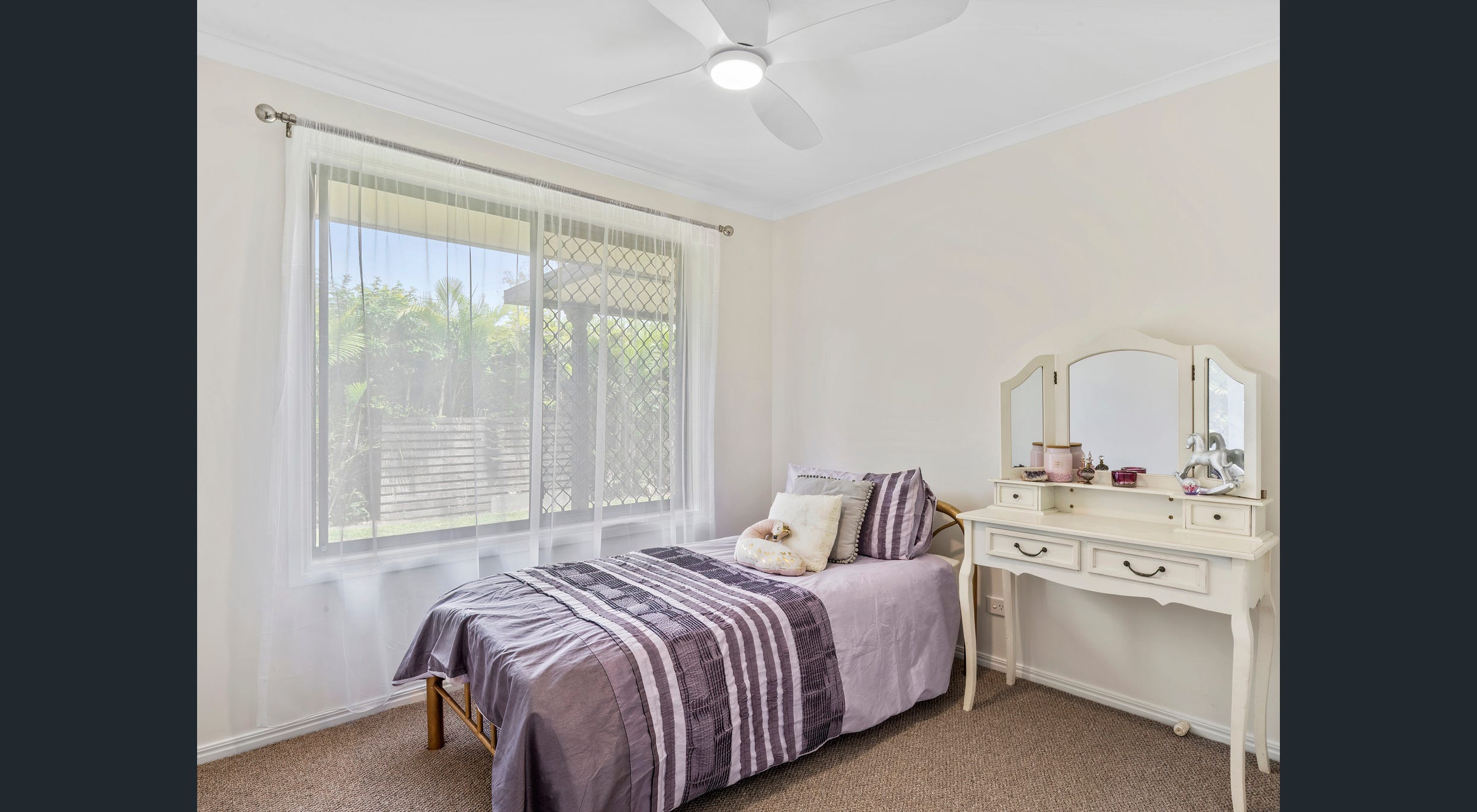 This immaculately maintained single-level residence has been recently refreshed throughout, featuring freshly painted interiors, a refurbished kitchen, new LED downlights, updated ceiling fans, and brand-new carpets in all bedrooms.